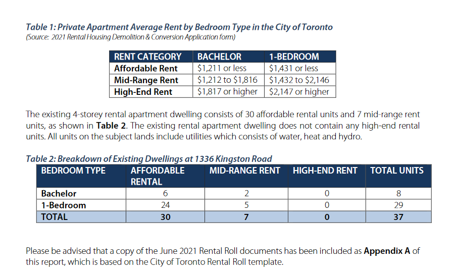 "Demolish the existing 4-storey brick apartment building in order to redevelop the subject lands with an 8-storey apartment building with 112 units (gross floor area of 6,996 sq. m.); below grade parking. The proposed vehicular access would be provided by a private driveway off of Kingston Road along the eastern building facade with loading access contemplated at the rear of the building."