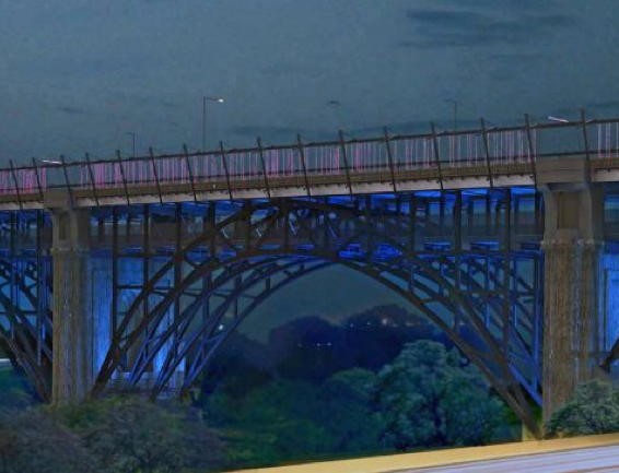 The executive commitee will decide today whether to spend an extra 1 million on the Luminous Veil, using money saved from other Pan Am projects. John Tory has said he’d prefer that money be spent on something else. Lighting on the underside of the bridge has been scrapped, however the control system will allow for eventual completion if money can be found.