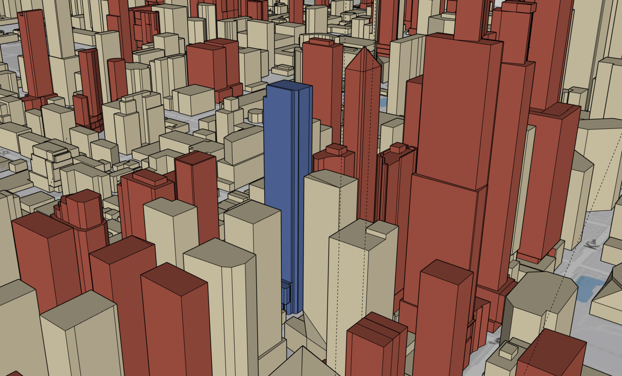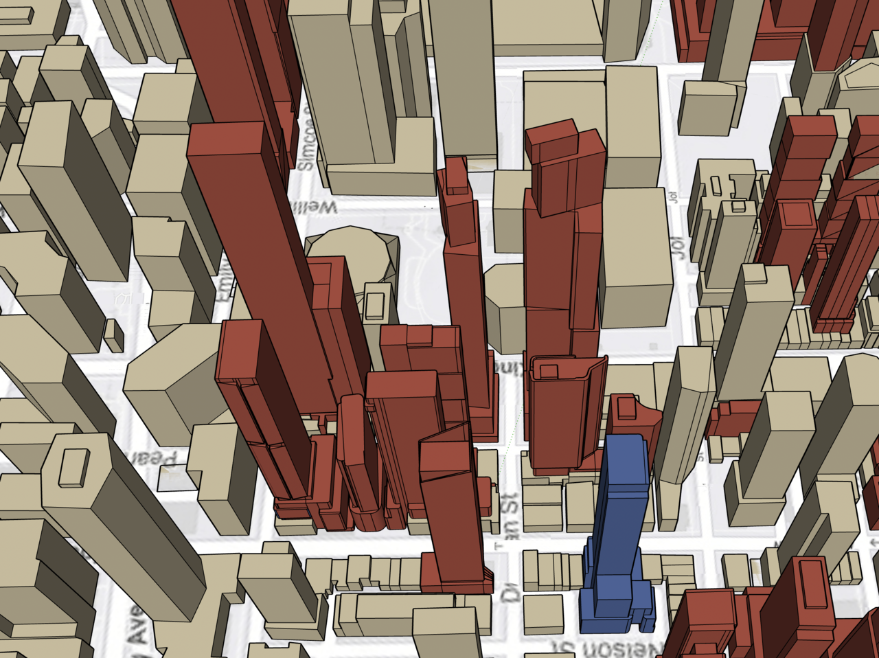 A few massing models to show impact on skyline (260 Adelaide in BLUE):