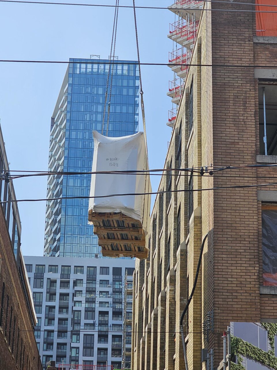 I would expect that it remains bare concrete until the adjacent property redevelops and builds its podium to match the bare wall height before stepping back. With glazing coming straight to the property line for 400 King West above the bare concrete level, I would imagine that a limiting distance agreement was reached with the adjacent project to require the adjacent property to provide minimum separation distance on its site.What is the plan for the concrete wall with no cladding highlighted in the red box below?