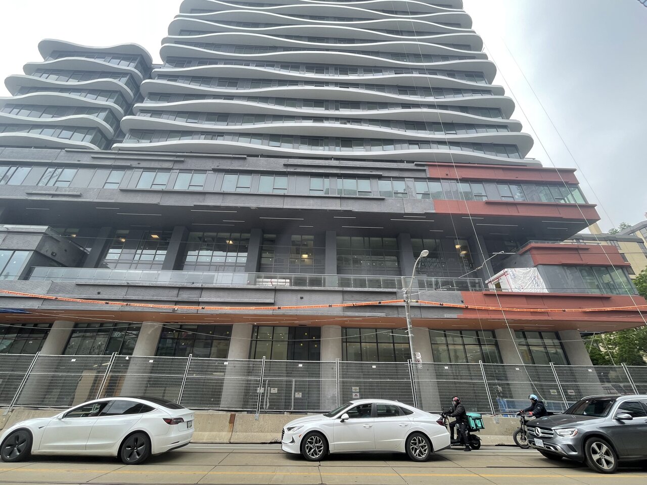 I saw that the renderings show a red podium, so I was wondering if they changed their mind due to negative feedback. But because the west elevation had been red for quite a while, I thought so was the rest. Looking at previous posts now I can see that the long side along Dundas was only recently painted red (or whatever you call that abomination)