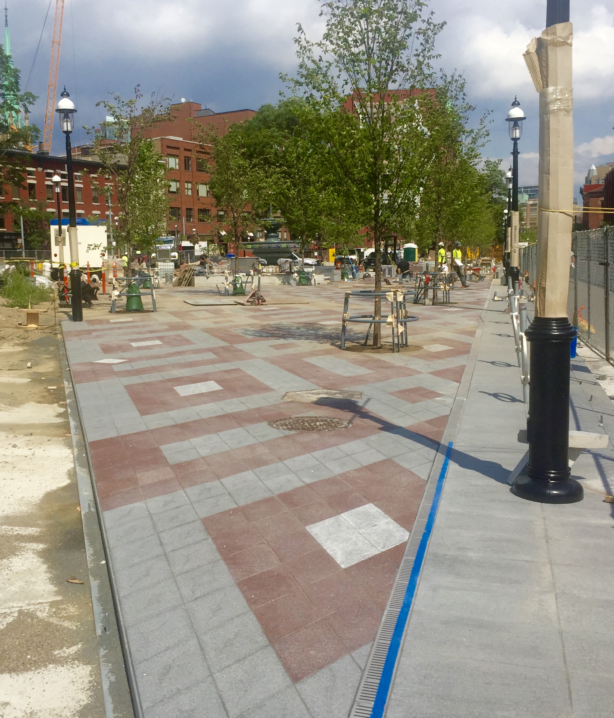 The Front Street sidewalk is opened again and the fence is pushed back into the Park. They are currently doing 'earth-moving' on the Wellington side in preparation for more tree planting (probably next week) and they are about to do the final (3rd) section of Scott Street. Movin' on.