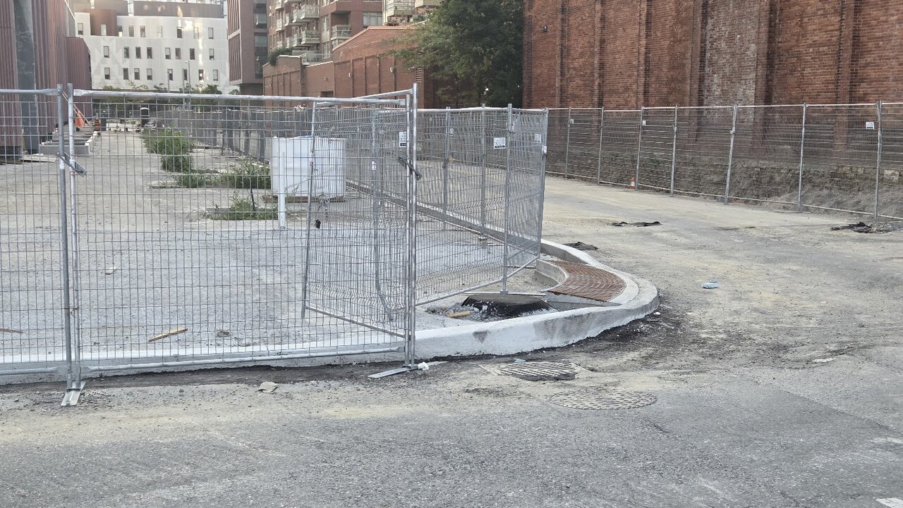 Ok, just had a chat with one of the workers at Cherry House. The interlocking is going to go completely around the building but he was not sure if it would be the white stones, like on the east side, or the red that they are laying in the laneway.