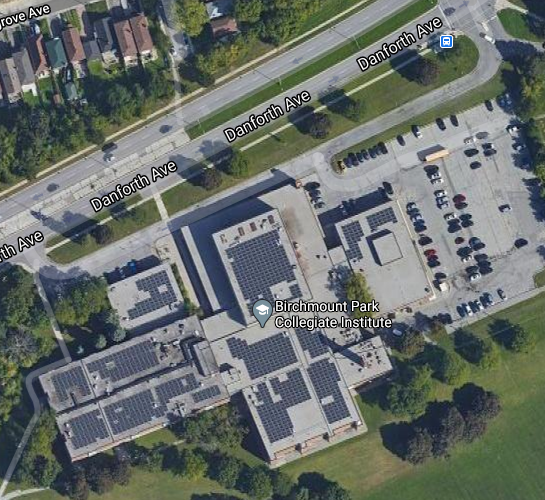 I went to Birchmount 2005-2009 and at that time we had 8 portables in the parking lot. Expansion on top of the eastern wing makes the most sense based on the school layout inside. However; the auto shop is in that wing - could be some resistance to building over top of that. The northwest single storey is the library.Fair enough.