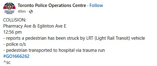 If you look at the article on cp24: https://www.cp24.com/local/toronto/...red-after-being-struck-by-lrt-in-scarborough/