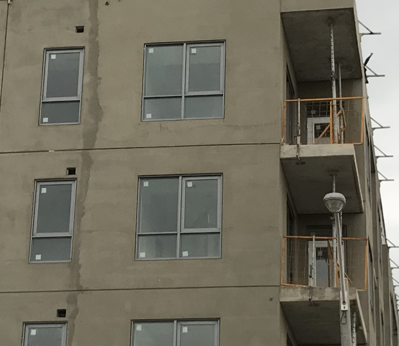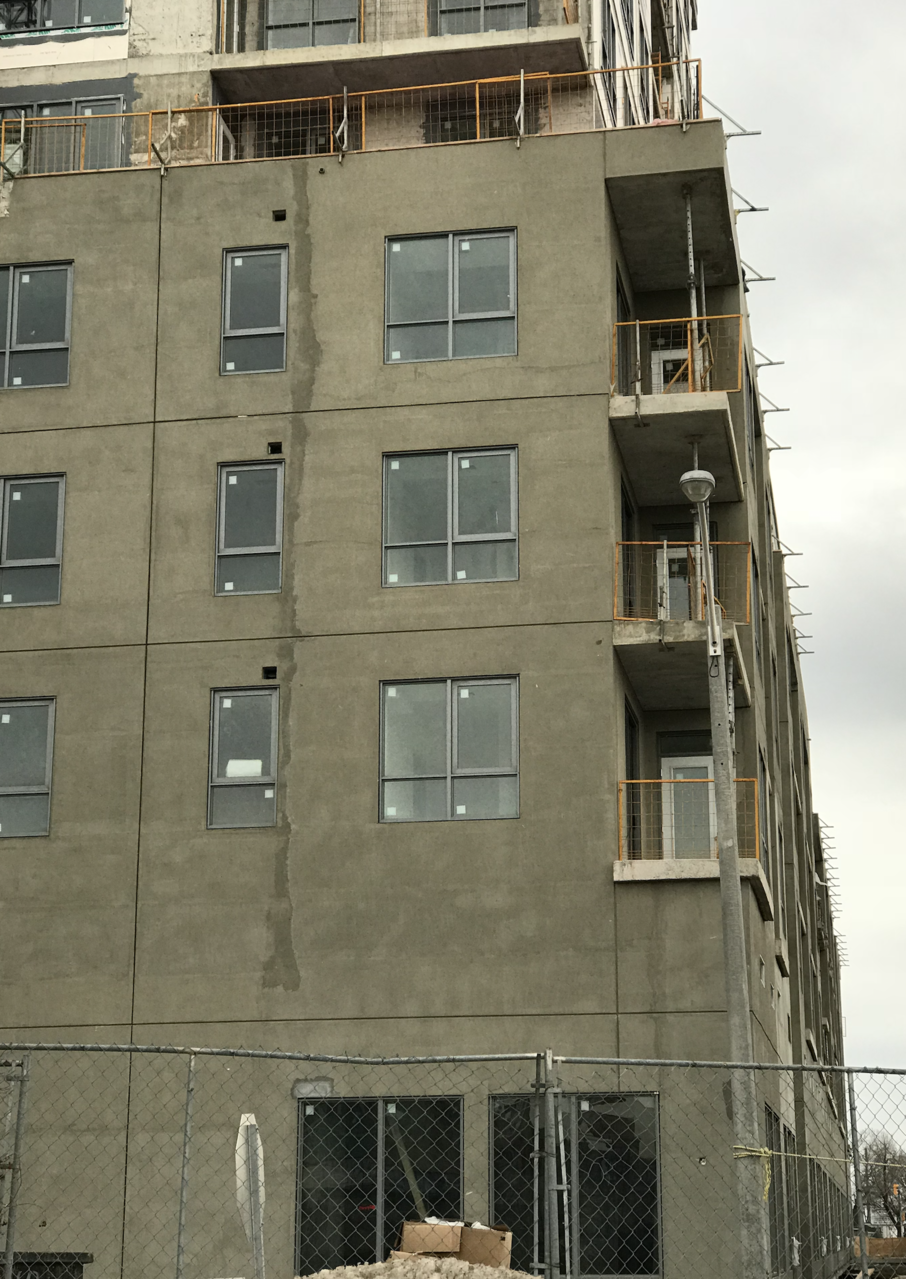 ...The stucco is a finish coat on townhouses facing East Haven, as per my previous post. There are patches of the building that look rough like this, but certainly nothing going on top of this surface. It is stucco. Not sure what you were expecting.