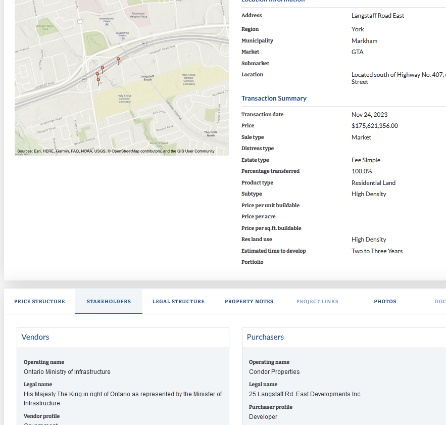 Odd that this land wasn't used to build a subway station for YNSE instead of shoe-horning a station between HWY7 and 407.Was this transaction ever reported? Didn't realize the government sold land to them...