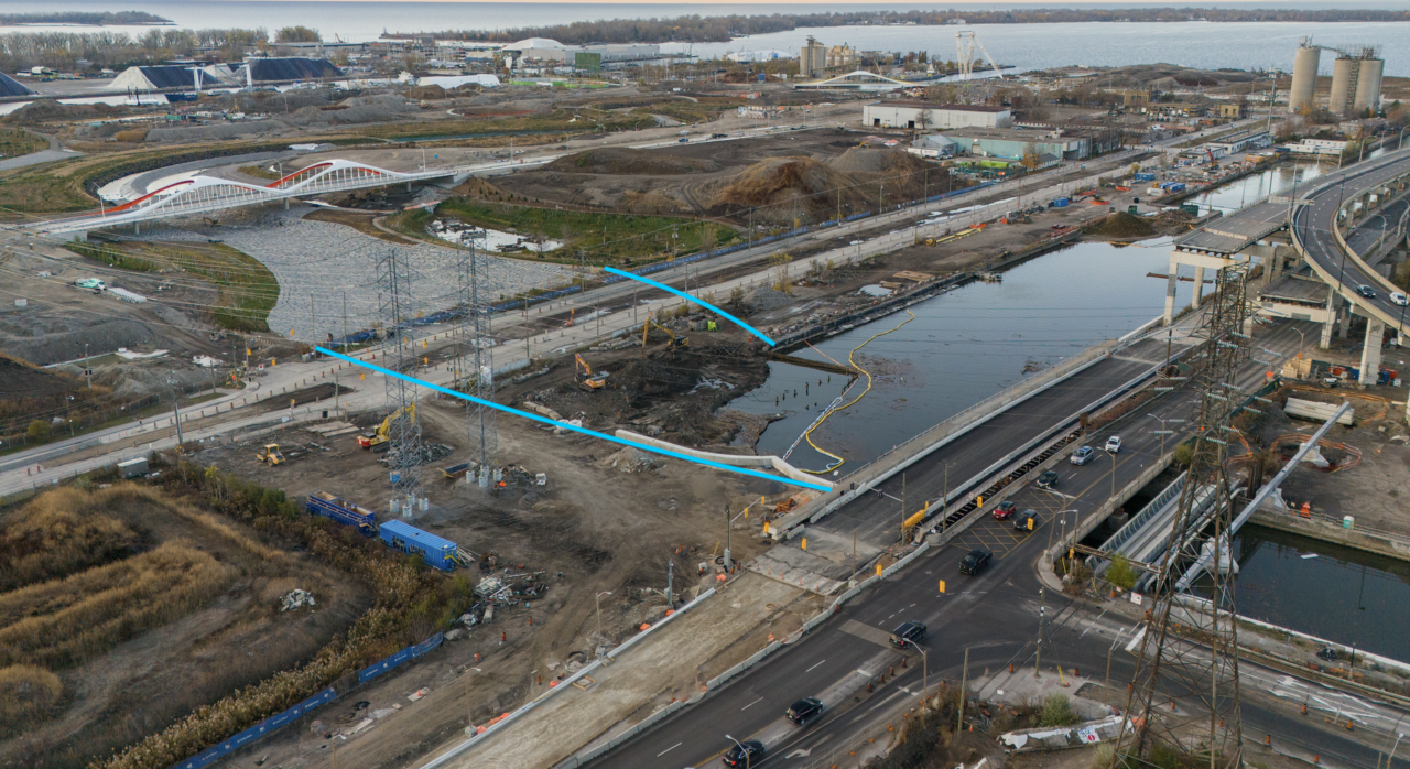 From casual on-site observations there is really not that much 'area' of actual excavation to do and the southern (completed with the big rocks) area is not that much lower than Villiers Street so the excavation is not terribly deep. The plan is to open this (the main. northern) entrance to the new Don River valley in 'fall 2024' so I think they have lots of time - even if they plan to install the rocks right up to the current Villiers channel. There will (I assume) be no utilities running through the to-be-excavated area and they currently seem to be capping off any than now run the full length of Villiers St. (which will soon end at the new Don.)I'm curious about how they're going to cut through this section.