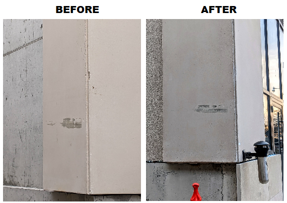 So there it was - a wait until it's finished plea and a promise to fix all of the chips in the precast panels.