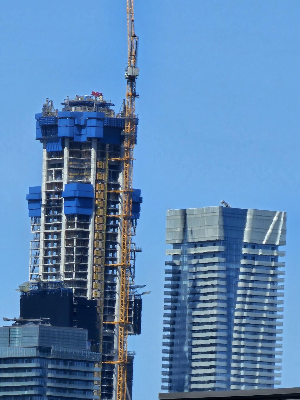 The cranes to the right of One Bloor West in the Wallace bridge photo are from the Magellan Community Care complex on Lansdowne south of Wallace.