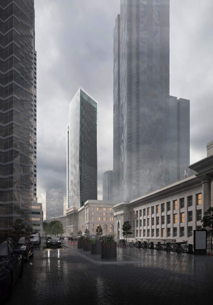 I sorta agree. It's the best case scenario if you had to shove two towers on-site, which I would rather not do, but oh well.Call me crazy, but I think this works. The towers are elegant, and the design is calm enough so as not to compete with the base building. There are only a few good ways to rise contemporary above heritage, and this is one of them that I think looks to be executed fairly well. Obviously it will need to be well detailed for this to work, but I'm there on the concept.