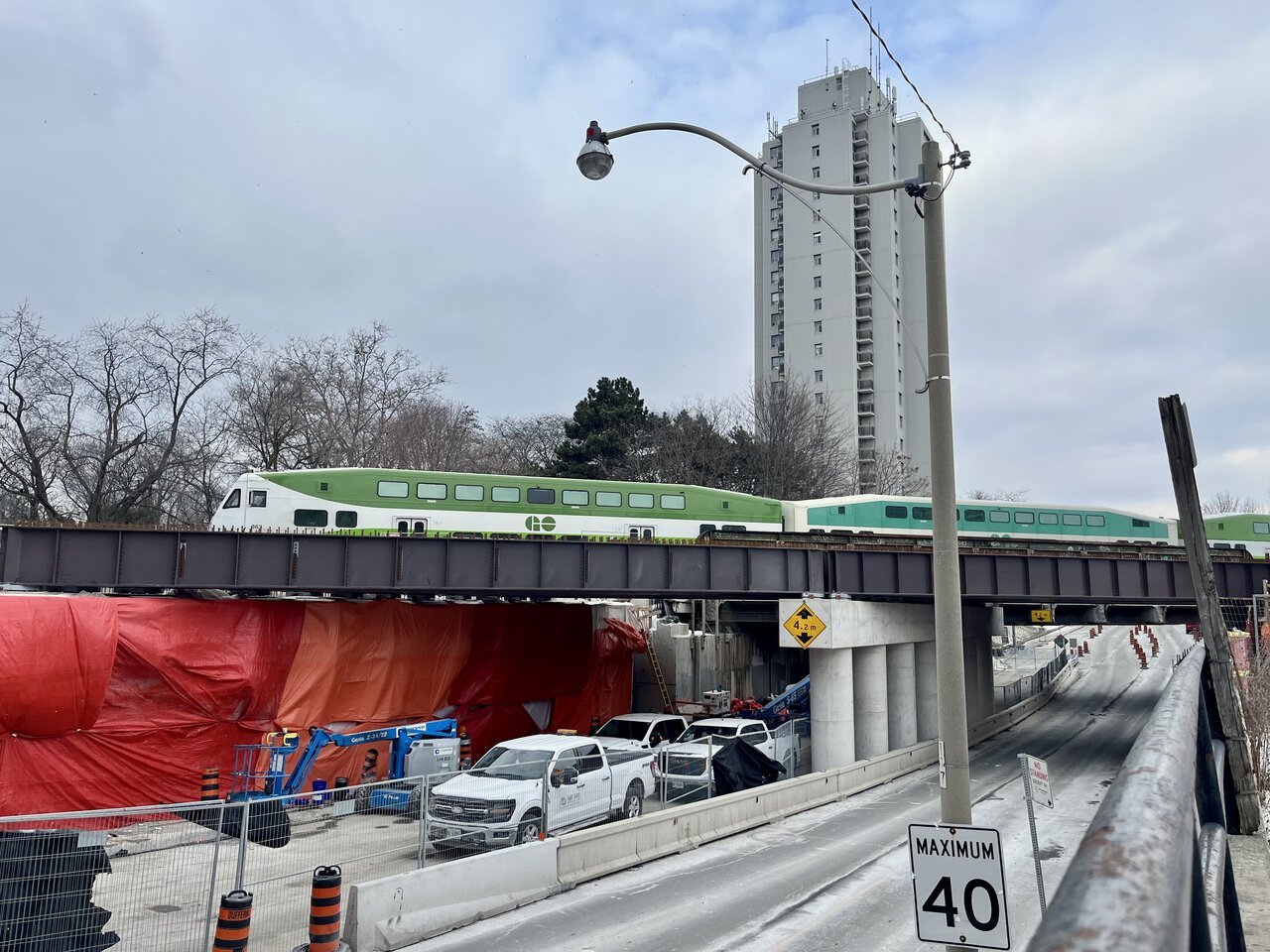 This picture really shows the change in bridge clearance height. It is quite a project to renew and raise this 100-year-old rail corridor through an urban area.![]()