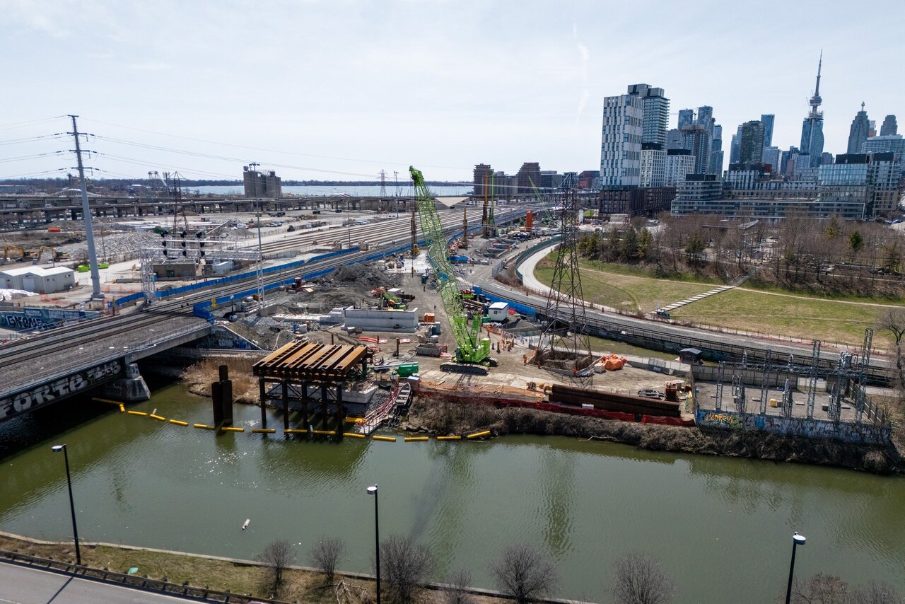 And the trestle bridge for the lower Don crossing has it's first set of girders.