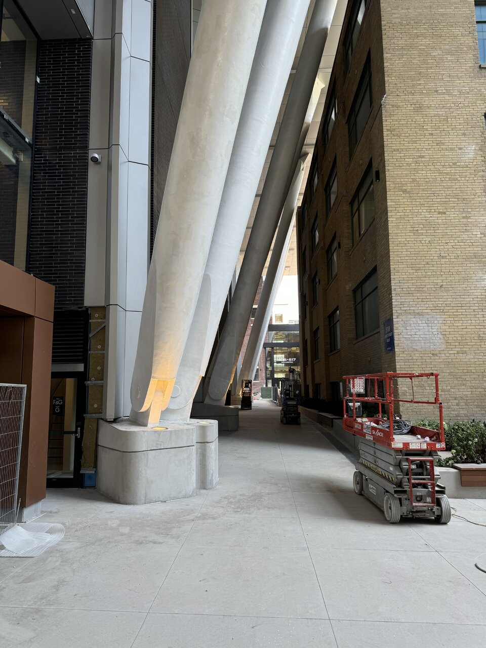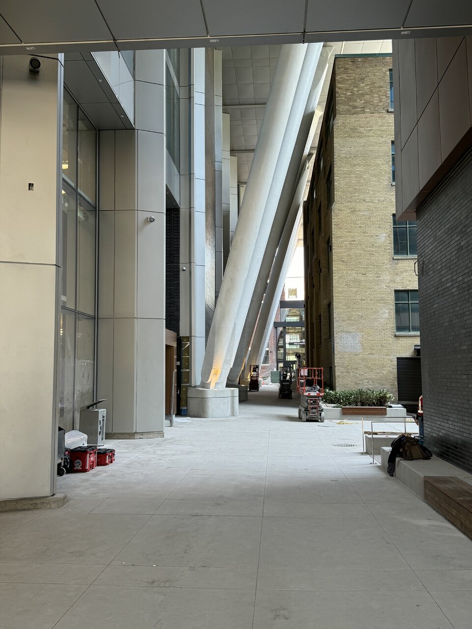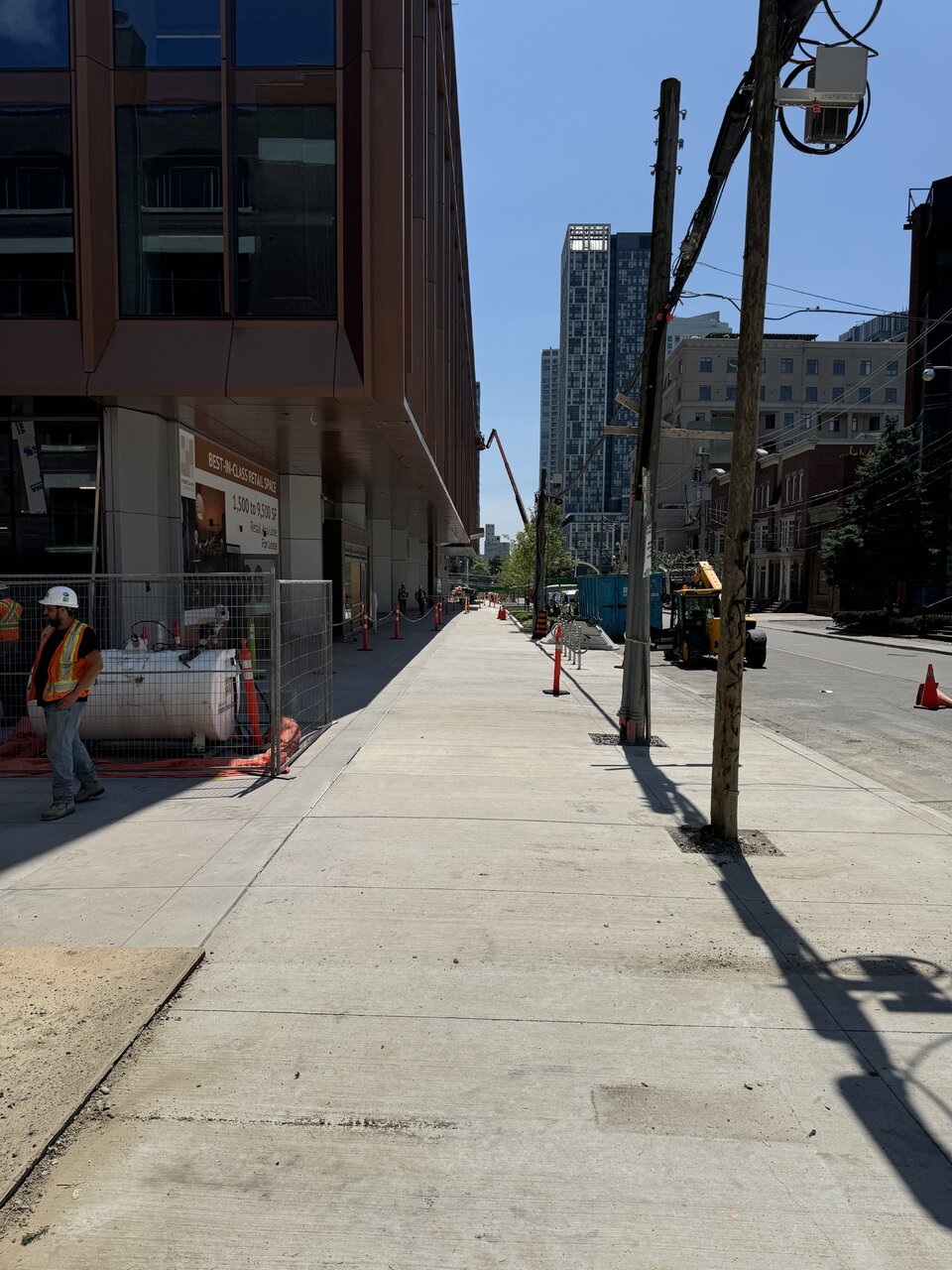Portland Street sidewalk, with still to be installed cladding and glazing sections: