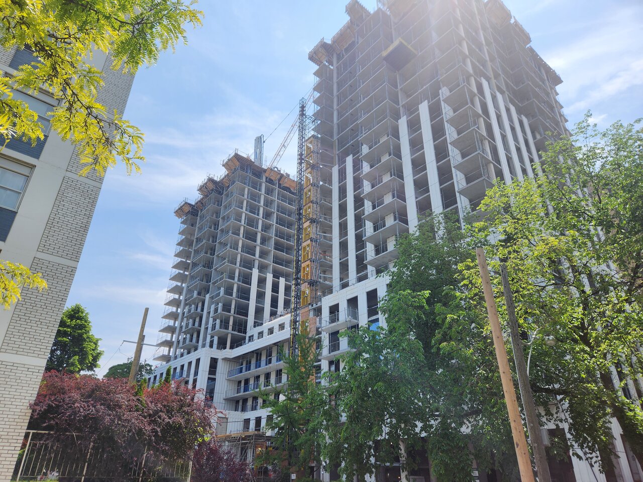 I’m glad the area is shaping up into a proper urban core — not just a built-up major intersection.Being nestled within a node away from the major intersection, this is not going to get the same accolade as some of the tall downtown developments. But I find the exterior cladding quality to be very good so far. The window wall in particular is among the best I've seen lately for ongoing projects.