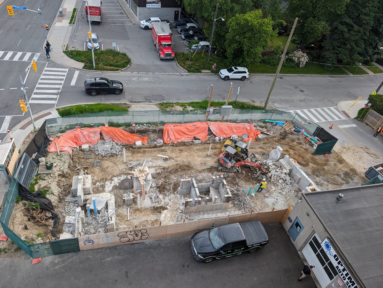 Looked like shoring has begun (sorry, no pics). Two permits issued so far.