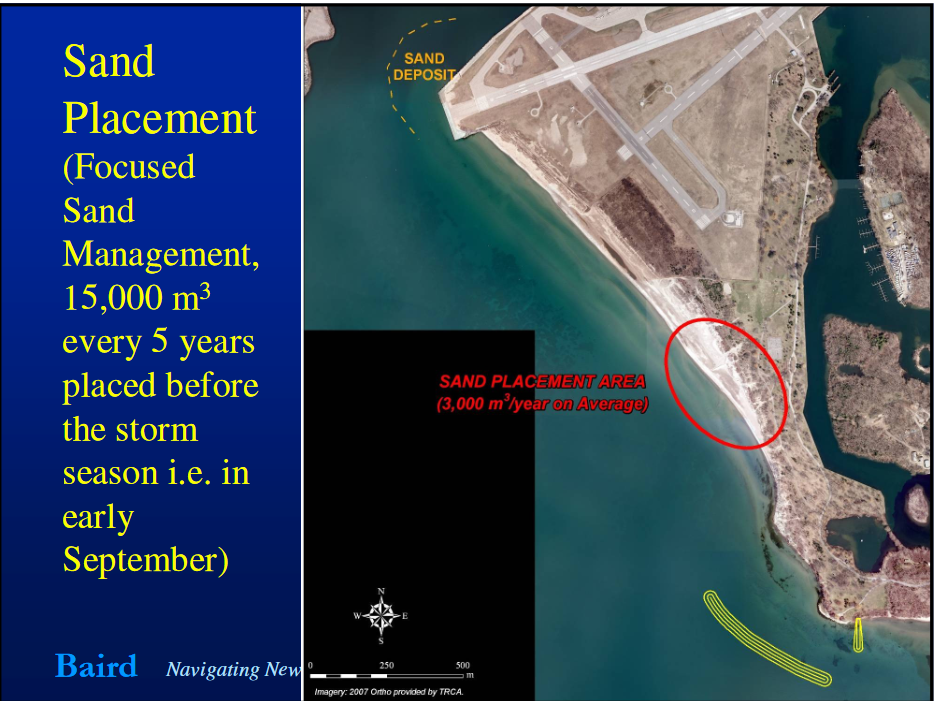 The expectation is that the Beach will lose an average of 3,000m3 of sand every year, and this will be addressed by sand management (new sand will be brought in each year) the annual date proposed was early September just ahead of the fall storm season.