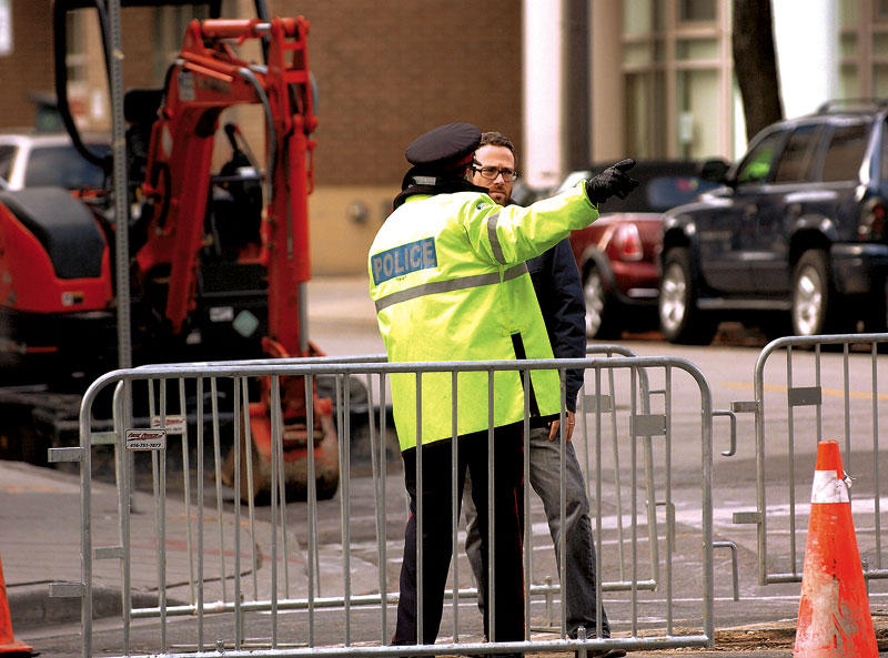 I don't think you're that likely to see police officers enforcing anything. If you're within a block of a station you'll see some coming and going, and you'll see them out working their paid-duty scam, but otherwise I could go a whole day doing my thing in different parts of the city and hardly see a cop at work. Contrast that with the TTC, which has a similar budget hit to the city. Even though much of their work is happening underground, can't walk about the city without seeing TTC employees, in their buses and their streetcars, all day.