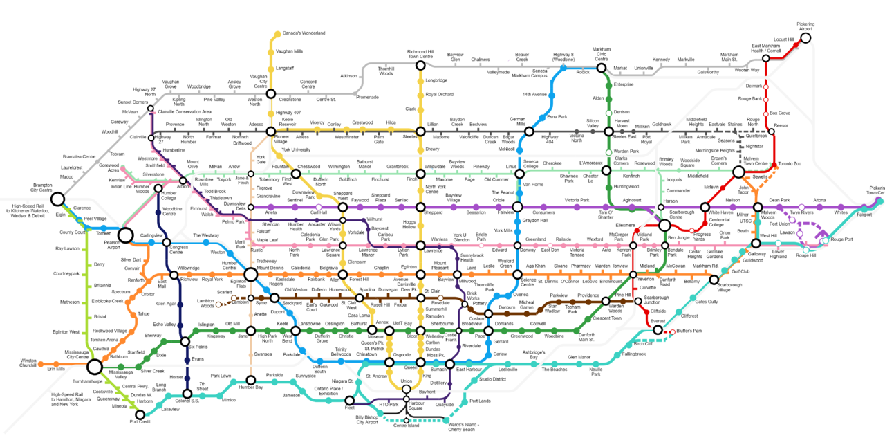 I made some Tokyo style fare maps for the TTC Subway system. Over in Tokyo they use a distance based system with fares increasing the farther you travel although the system is segmented into zones that encompasses a certain range of distance. These zones being 0-6km, 7-11km, 12-19km, 20-27km, and 28-40km. As you could probably guess over there you tap in at your origin point and then tap out at your destination and your fare is then charged. I made 2 maps showing how the fare would be based off the current Tokyo Metro fare converted from Yen to Cad. As well this is only for the Subway system, I don't know how this would encompass the bus/streetcar network and in Tokyo people who use the Suica or Passmo card pay a reduced fare similar to our Presto; this is not facotred into the map it is only base fares.