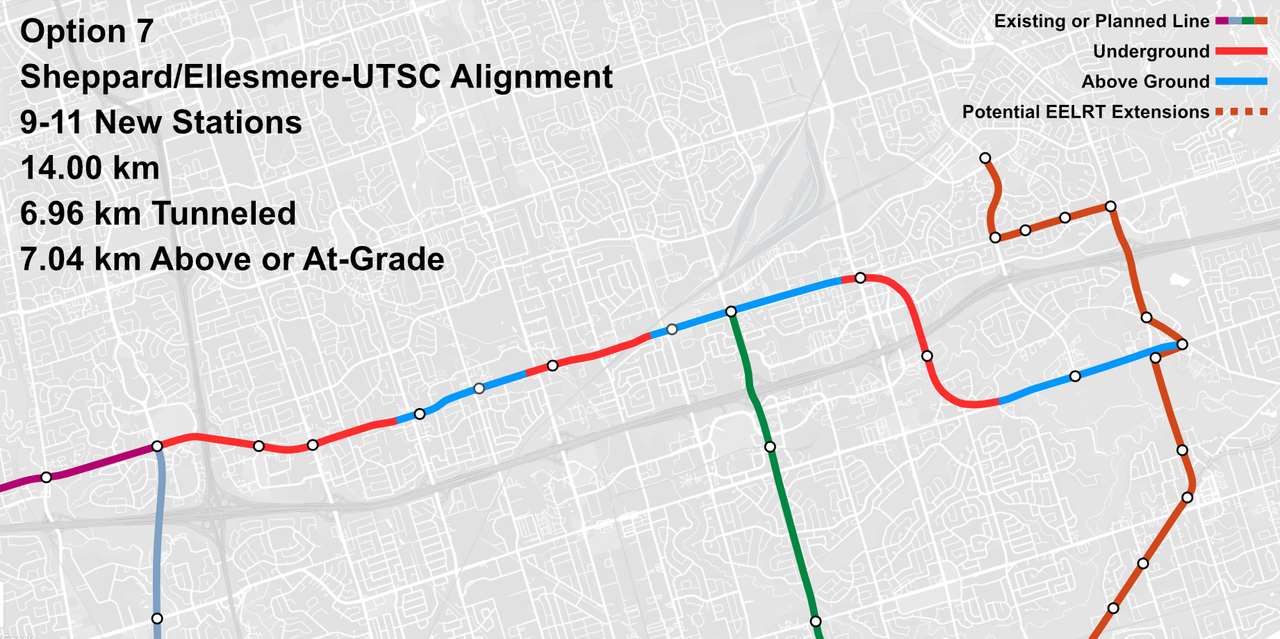 My gut is that retaining the same wide-body subway technology is OK if we expect this line to never get extended past STC (or McCowan) in the east, and past Sheppard West (Allen Rd) in the west.