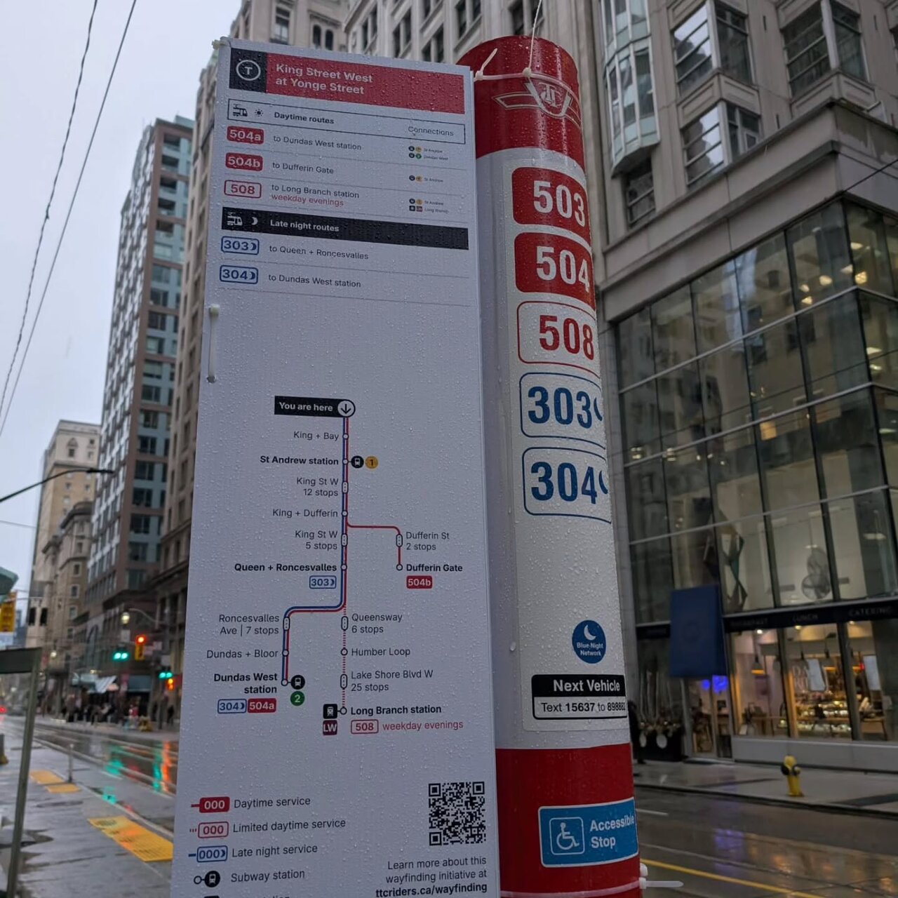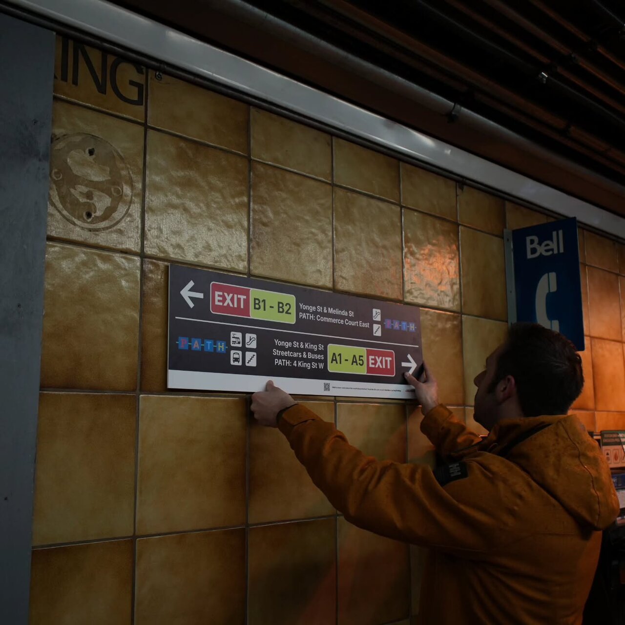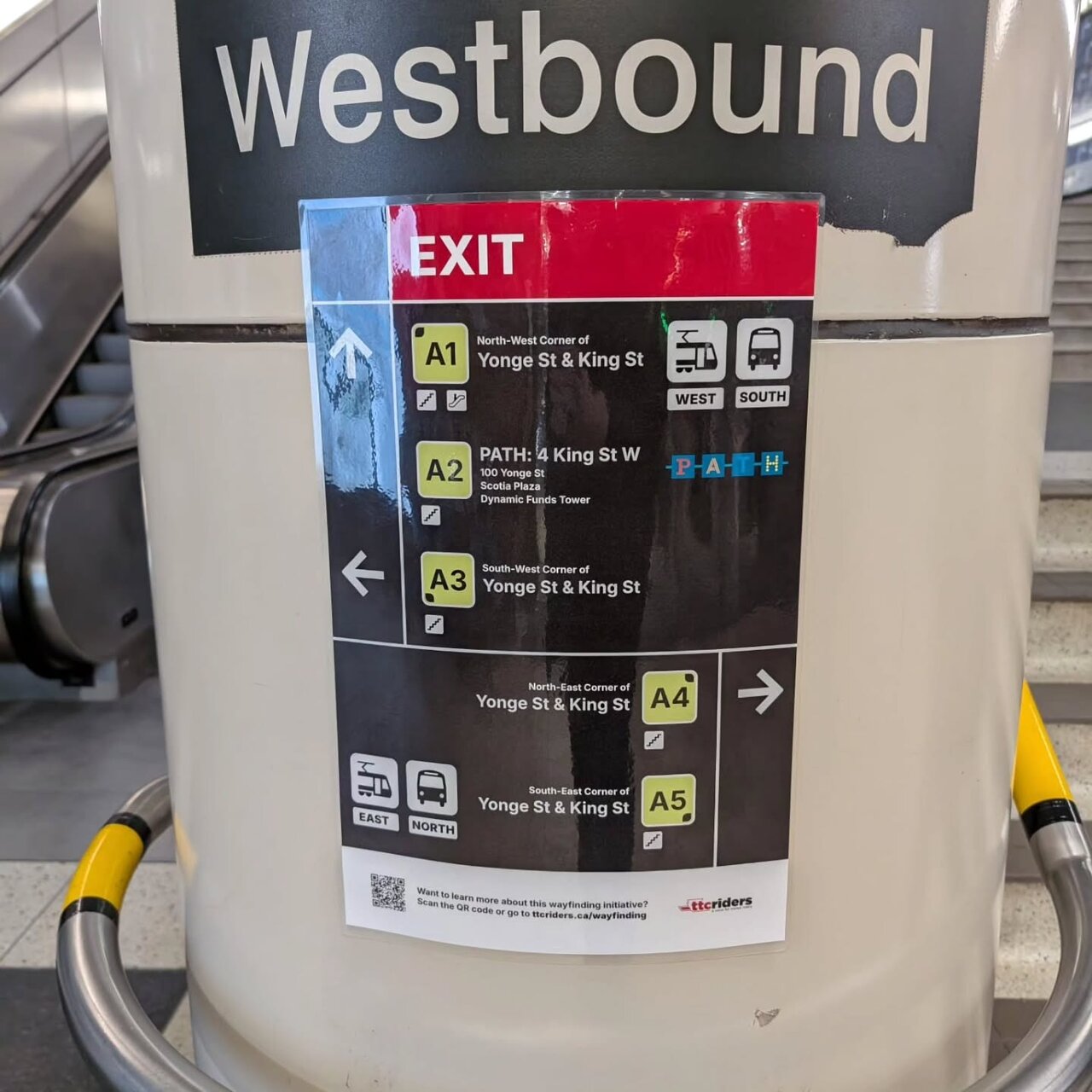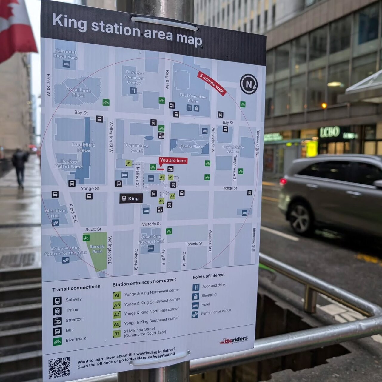 For regular commuters it’s fine. But for everyone else? I only found one street-level sign at 3 King W but it faces parallel to the street and is invisible unless you're at the right angle. People miss things right in front of them all the time, so having just one poorly positioned sign is... not good.