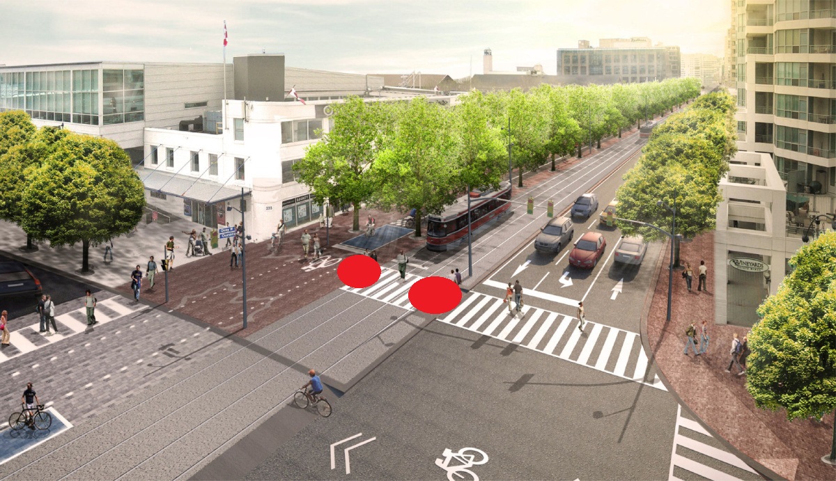 I find that on Spadina you have more crazy people who will happily dart right in front of moving cars/streetcars either with or without looking, but completely deliberately. On Queen's Quay it's a different class of moron--people with zero spatial/situational awareness who mostly don't even know (as much as they ought to) that they're standing right in a roadway/streetcar track, and will stare at an oncoming streetcar hitting the emergency brakes and blaring its horn+bells not understanding what's happening.