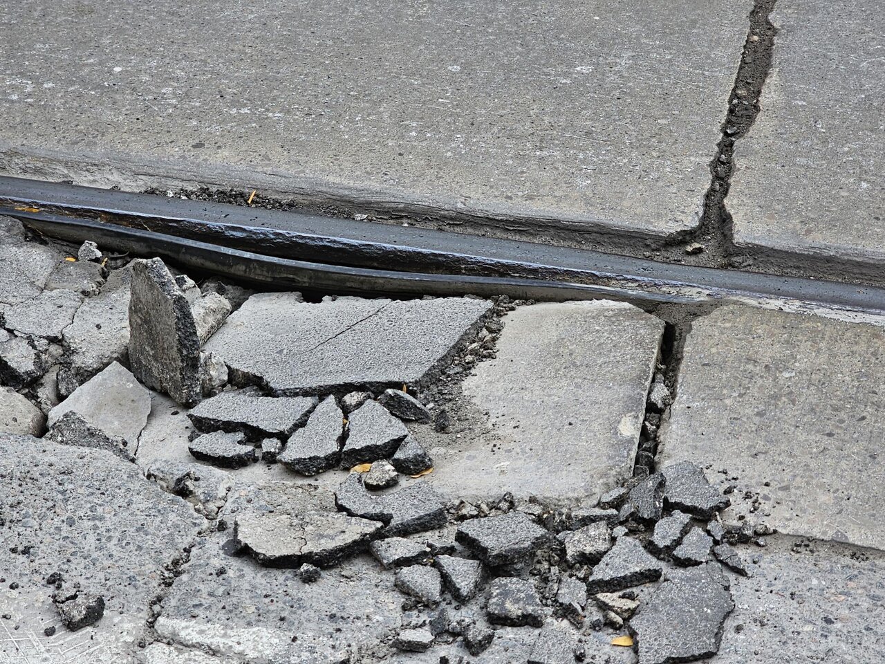 There are LOTS of sections of King which have poor streetcar track - in particular, as shown here, where the concrete on the 'margins' between track and asphalt has deteriorated. The TTC is (too slowly) replacing all of the track on King. This year they did work around Strachan. In 2025 they plan to do: