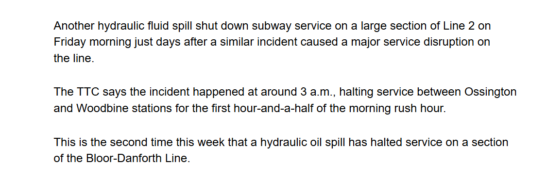*Another* hydraulic fluid spill on line 2, apparently St George to Greenwood. No service Ossington to Woodbine.