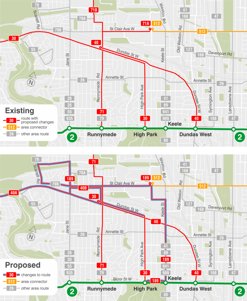 There still is the 26 DUPONT bus, that turns off Annette Street. It was renumbered from the 4 ANNETTE bus, to make the "4" available for 4 SHEPPARD subway line. Before the fare zones were eliminated, people would walk down to catch the 4 ANNETTE bus to JANE STATION (or ST. GEORGE STATION), to avoid paying the zone 2 fare on the 35 JANE bus.