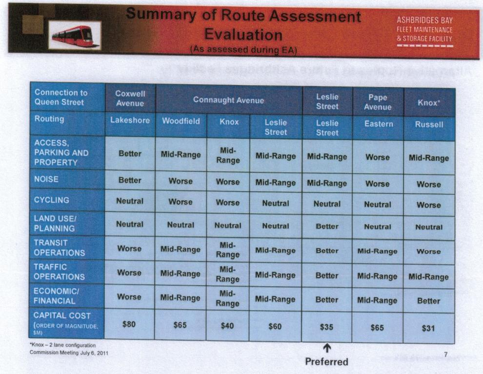 My own suspicions about Knox are drawn from the fact that it was the second choice. I believe they were considering routing cars through Russell so they would avoid the one way section on Knox. As a backup connection to Leslie it might encounter reduced opposition from Canada Post allowing it to be built.