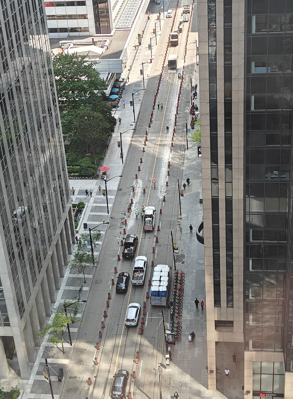 Your photo is actually very interesting as it seems to show them fixing some of the deteriorated 'margins' on the tangent (straight) tracks on King just east of York. Great that they are taking advantage of no streetcars on this long stretch of King to do this, there are lots of very poor areas. They appear to be intending to do it all the way from Spadina to Sumach - let's hope they finish!