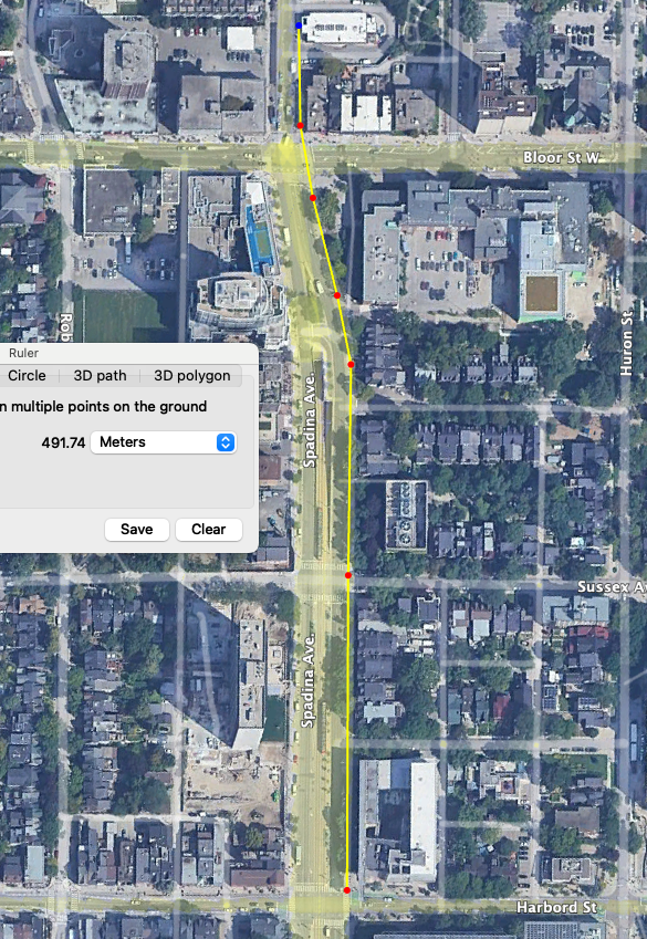 For example, we could eliminate north-south left turns at Spadina & College, with northbound left-turning drivers instead looping around Spadina Crescent, and southbound left-turning drivers doing a U-turn at Nassau.