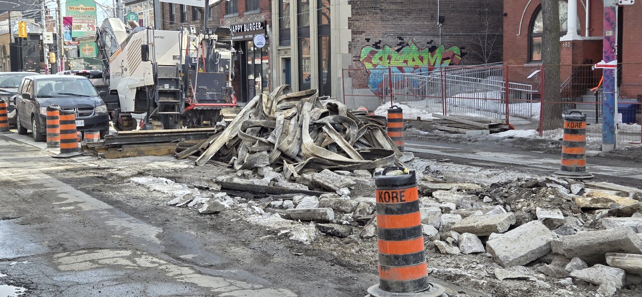Walking over the Queen Viaduct today. Major construction work going on from Broadview to River Street, along Queen. Signage says January - April, 2026. I snapped some shots, since I happened to be there and some of the stuff going on is cool, though disruptive to the King and Queen Streetcar lines...