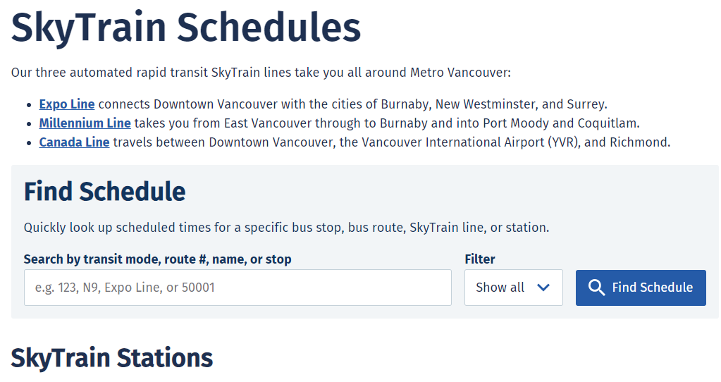 Finally, Translink calls Vancouver's Light Metro network "SkyTrain" and its stops "SkyTrain Stations":