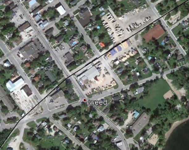 While we're looking at impacts on towns, it's worth noting that the impacts on Tweed would be just as severe as those in Sharbot Lake. Plus the ROW isn't even preserved, it has all been divied up among neighbouring properties: