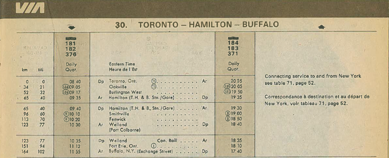 As for rail service to Port Colborne, even though that city was routinely listed in CPs and VIAs Toronto-Welland-Buffalo schedules, this only referred to a bus connection.