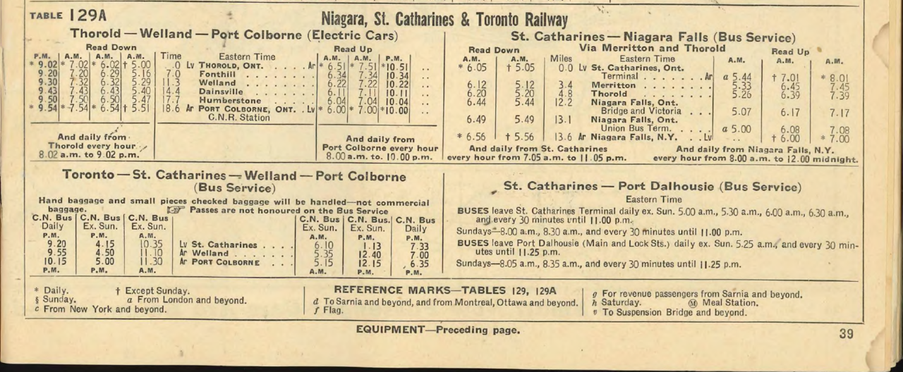 Additionally, there seemes to have been an hourly "Eletric Car" (presumably: street car) service between Port Colborne, Welland and Thorold until 1954/55: