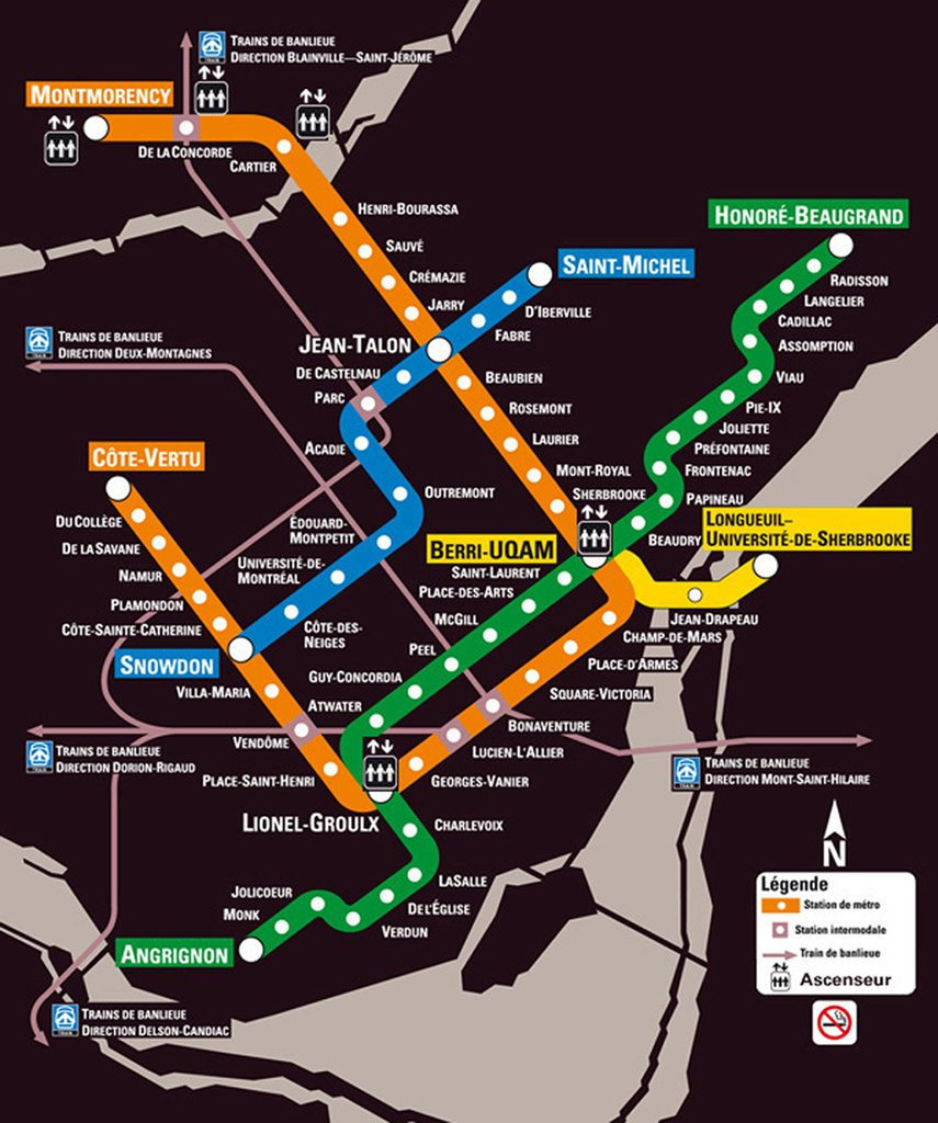 I first stepped foot into Montreal only on January 1, 2011 (as part of my first-ever VIA trip - from Ottawa via Montreal to Quebec City), but all Metro Maps I recall indicated the Commuter Rail network quite prominently. Having checked the STM website, it seems like they now finally also refer to the intercity rail services available at Gare Centrale, though of course unilingually in French:How come no one raises Montreal as an example? I don't recall there ever being any indication on the Metro map in the trains, on which station you get out of for VIA. I'm not even sure you'd get everyone to 100% agree on which is the best station to get out at (probably depends what station you entered the Metro at).