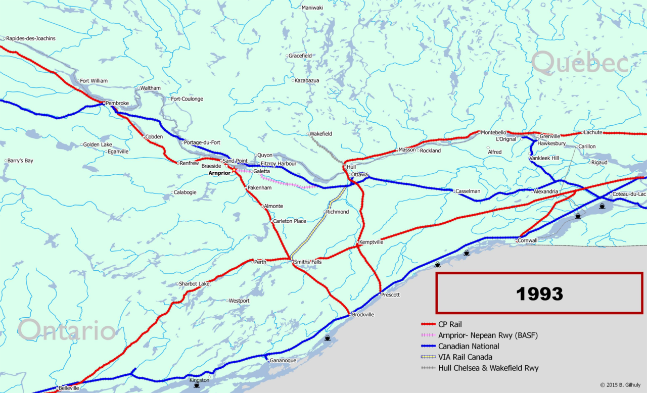 Anyway, had it not been for the O-train in Ottawa, one could have imagined an HFR corridor running beside the Kingston Sub and on a rebuilt B&PR alignment from Prescott to Ottawa. That way the losses in terms of catchment area would have been minor and the whole service could have been put on the new alignment.