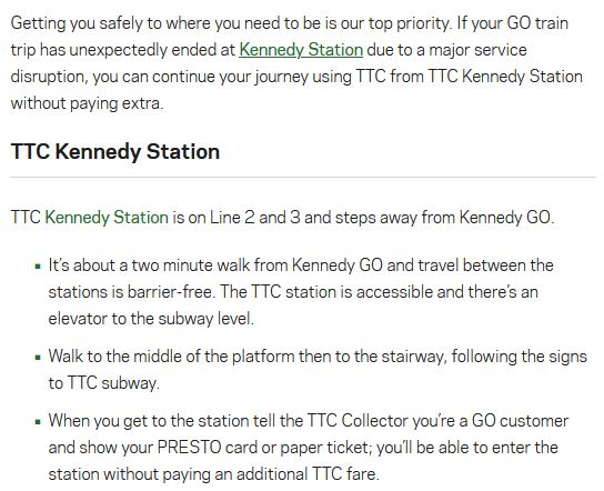 It was not clear to me about what situations we were talking about. If it's really just about VIA passengers detraining a stranded VIA train and continuing the journey on GO, then simply distributing them single-use GO tickets while still on board would be sufficient. If you were to tell them to just take the GO, you would now have to check with GO for which trains exactly they would wave the requirement to buy a ticket and whether they would still want to require proof of a VIA ticket...