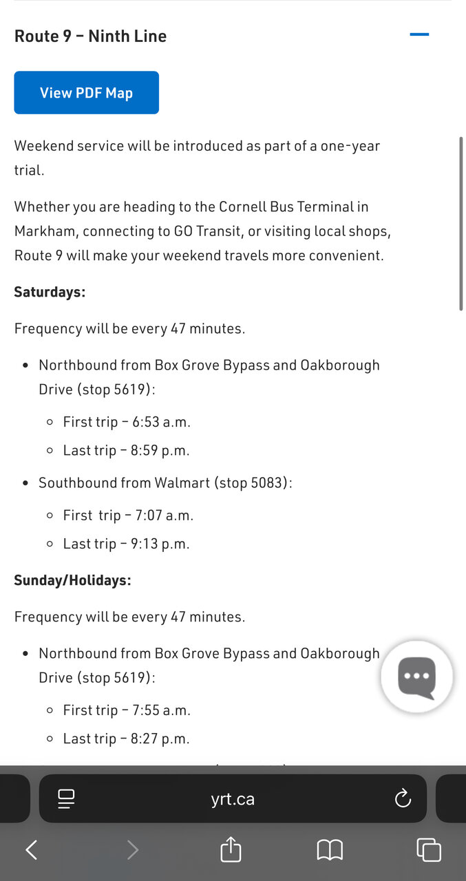 There were service changes that started on June 29 and it included starting weekend service on Route 9 that heads to Stouffville.