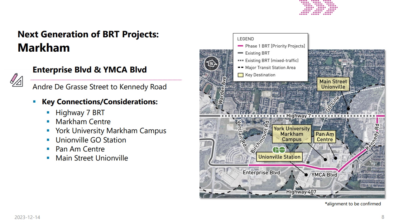 I really hope this gets funding. With the new York U campus opening this fall and more frequent GO train service to Unionville GO (next year? 2025?) there'll be much more to connect to -- so hopefully we get frequent service as well!