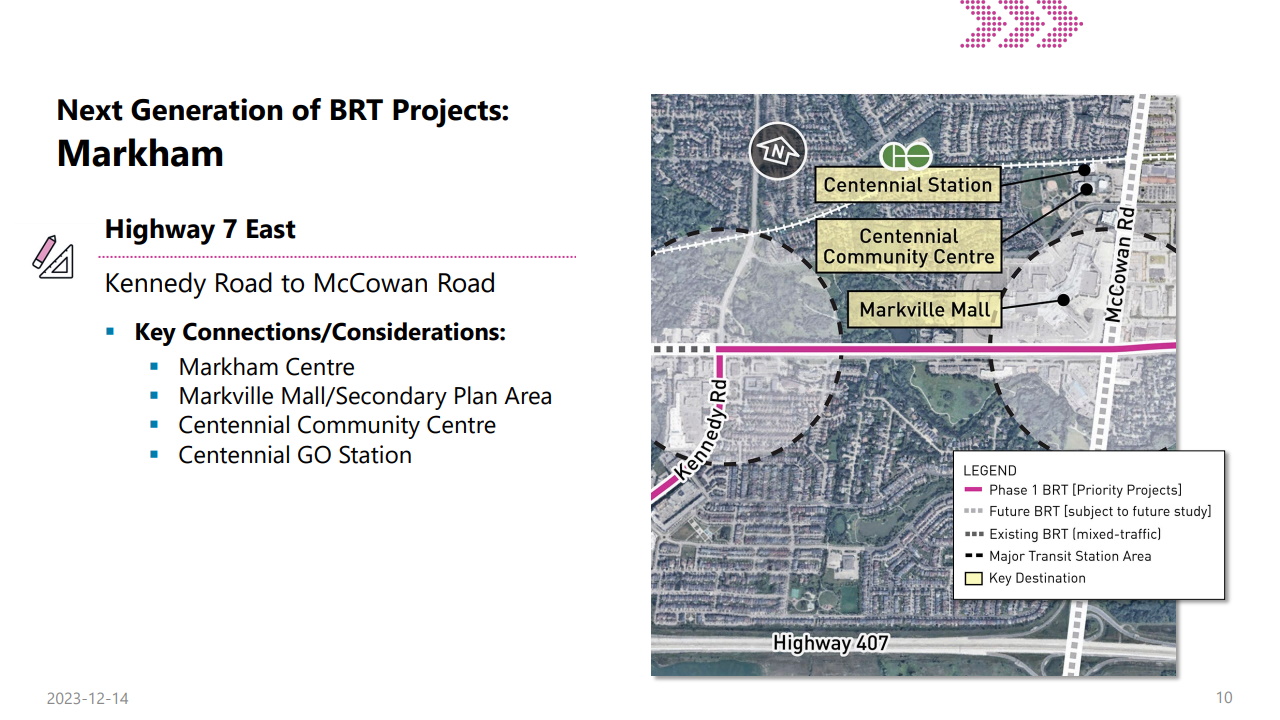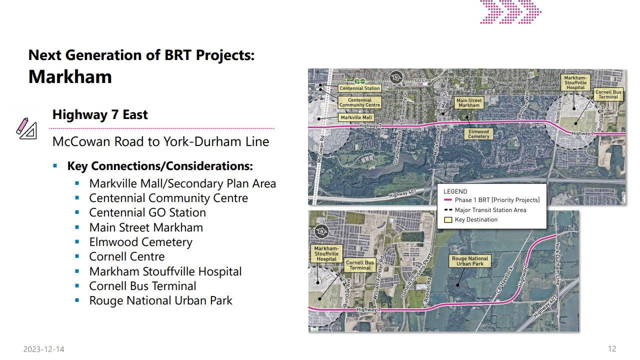 The Highway 7 bus rapid transit project from McCowan Road to York Durham Line/CP Havelock be prioritized to Phase 1 subject to analysis of associated costs and funding from senior levels of government.