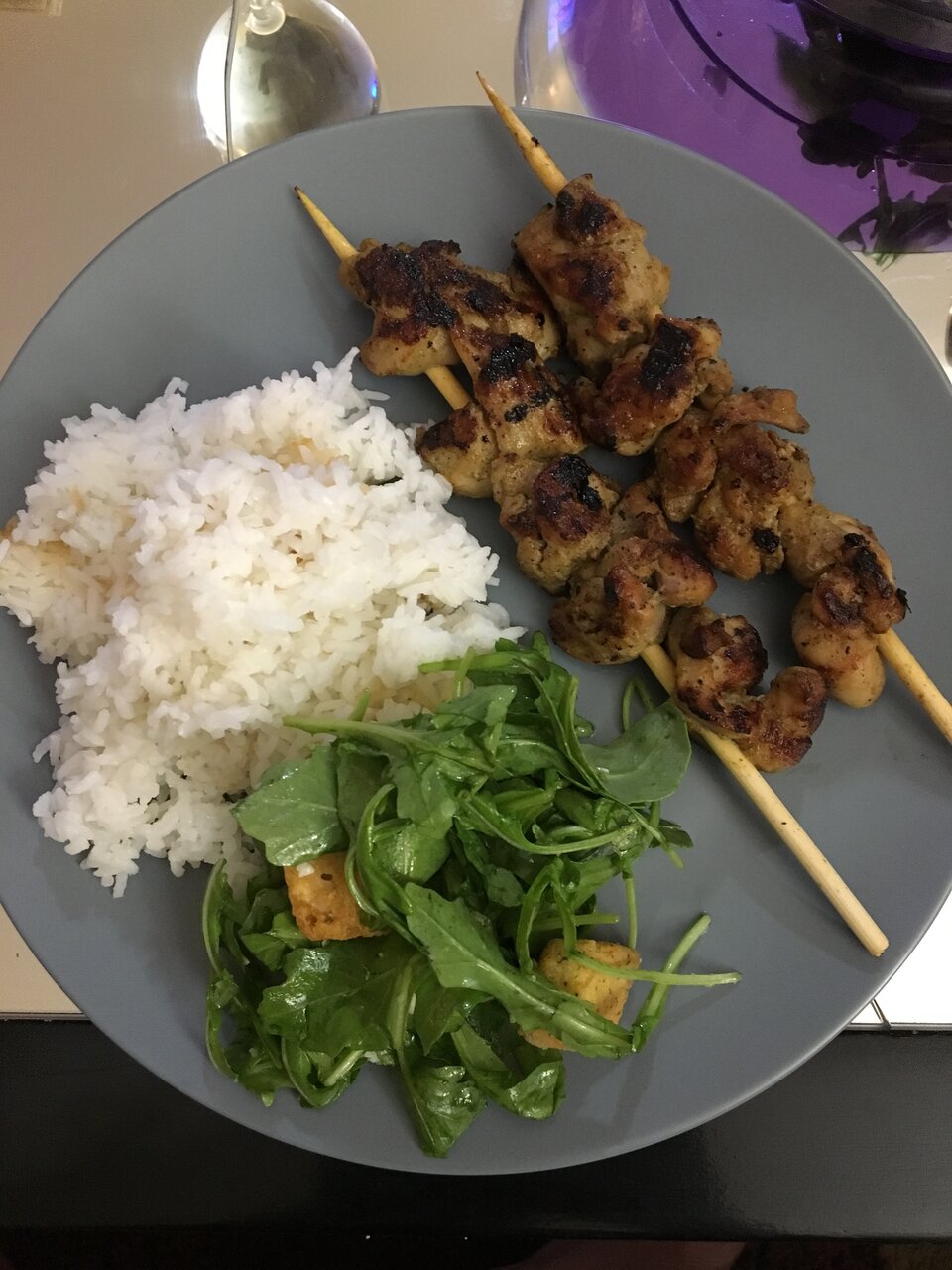 The marinade came with a peanut sauce but I didn’t take a picture of it.The only thing missing is the peanut sauce and some raw cucumbers and onions.