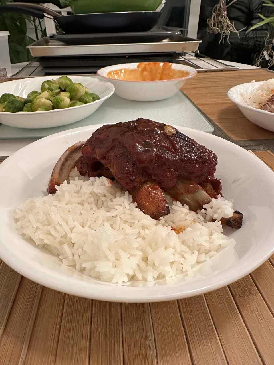 Was feeling ribs so that was tonight’s dinner. $9 rack of ribs from Fresh Co. Remove the silver skin, rub the rack with a lemon and rising the ribs. Dry ribs with paper towel. Dry rub and let it marinade over night in the fridge. Wrap the ribs tightly in foil and bake for 2h at 350F. Take out and liberally apply BBQ of your liking, put it back in the oven and broil for 5mins (didn’t set the temperature but it somehow landed at 510F). Flip the ribs and apply BBQ sauce, broil for another 5mins. Flip the ribs once more and apply sauce and finish off with a final 3mins on broil. Absolutely fall off the bone ribs.