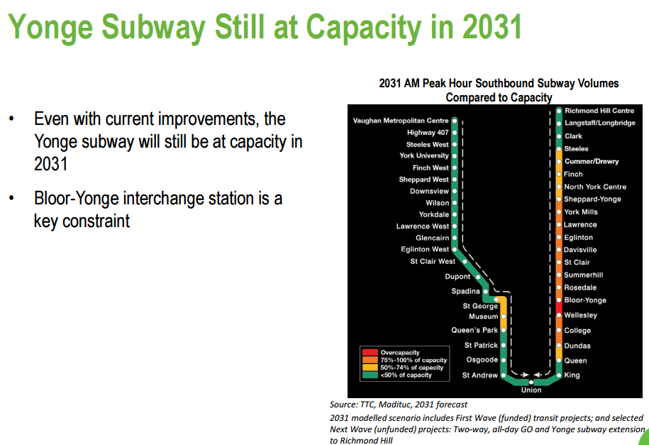 Sections of both are close to or beyond design capacity already, especially the Yonge branch.