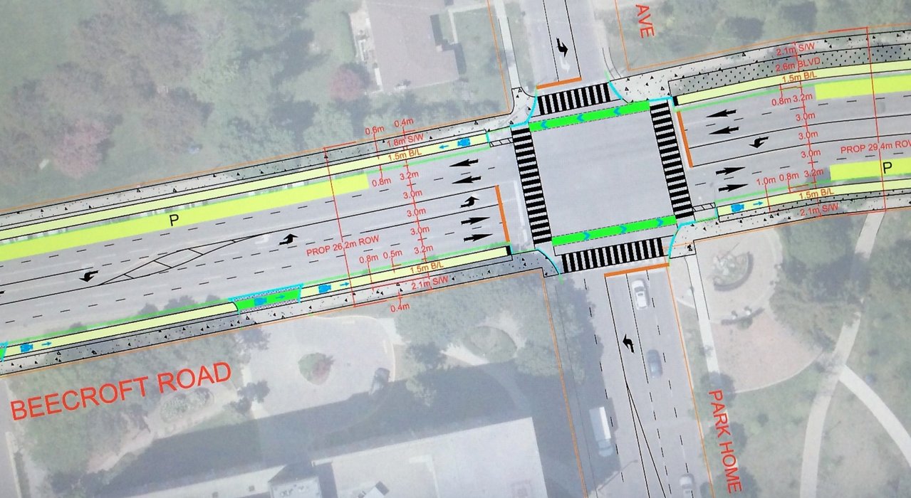 https://urbantoronto.ca/forum/threa...scape-improvements.25913/page-26#post-1313156Here in the narrower City Right-Of-Way on Beecroft Road between Sheppard Ave and ParkHome Ave,... there's a violation of Toronto Complete Streets Guideline,... Can anyone spot it??? The easiest and cheapest fix (anyone figure out how?),... might actually force CityStaff to change to Bi-Directional CycleTracks along west-side of Beecroft where it's long & continuous with minimal cyclist-vehicle conflict points.