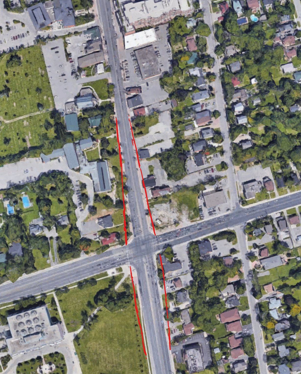 it would make sense if the station was farther north, closer to MM than currently, but considering that the stop is pretty much at the intersection as you have illuistrated, ther distance and time required to get from MM to the stop is pretty much tyhe same for both cases.I think reconstructing the intersection is the only solution here and it doesn't even have to be much. To obtain more space, the northbound left turn lane can be closed and traffic can turn one light earlier at Hopkins Street with a new traffic signal added at Atkinson Street to turn onto Major Mackenzie Drive. This would allow for a single pedestrian path on the east side of the lanes in the median to be built. Southbound passengers can cross the bus lanes from a pedestrian crossing at the north of the station, where busses will yield.