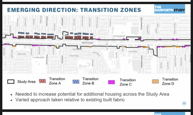 Let's start with the baseline proposition, which is that much of Danforth will go to as-of-right for either 7s or 8s, on both sides. That is not a small change.