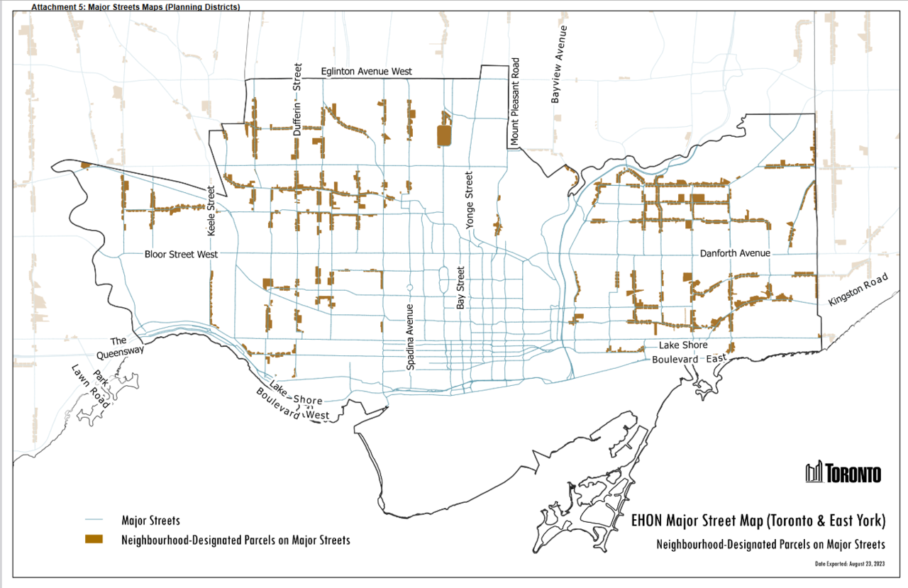The highlighted area reflects portions of Major streets currently designated 'Neighbourhoods'